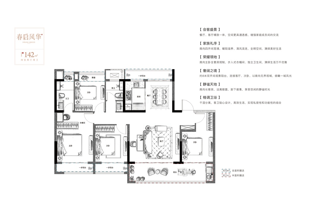 春启风华建面约142m² 4室2厅2卫