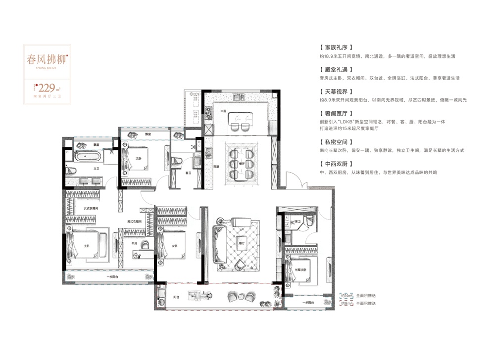 春风拂柳建面约229m² 4室2厅3卫